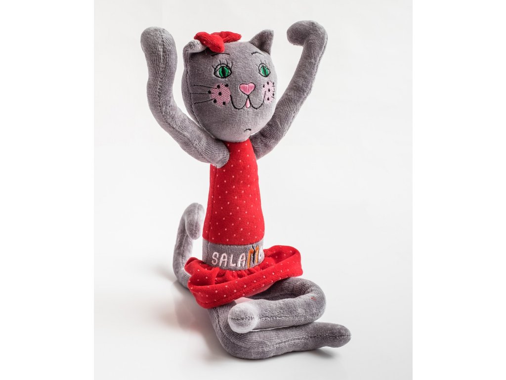 Pomůcka na cvičení jógy kočka Salamba je ručně ušitá pomůcka na cvičení jógy s drátem uvnitř, 40 cm vysoká, vyrobená v České republice, vhodná pro děti od 6 let.